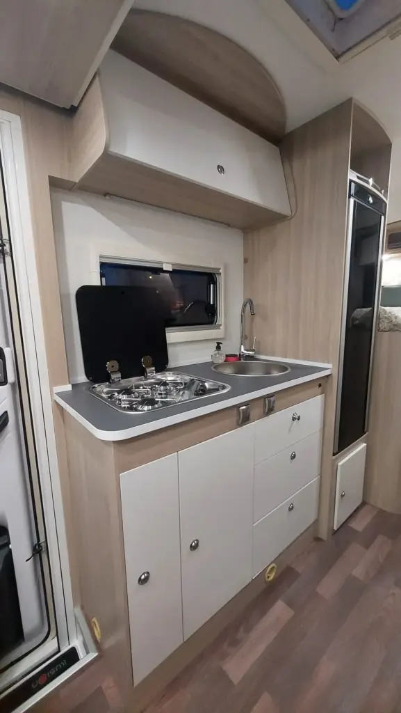 Todo lo esencial incluido: kit de cocina, químicos, calzos, manguera y alargador.