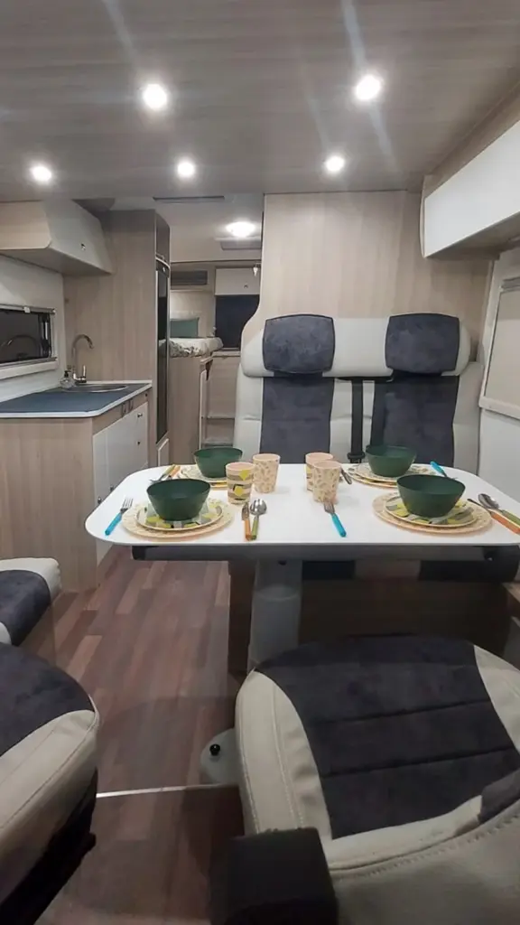 Comedor para 5: mesa orientable y asientos giratorios en cabina.